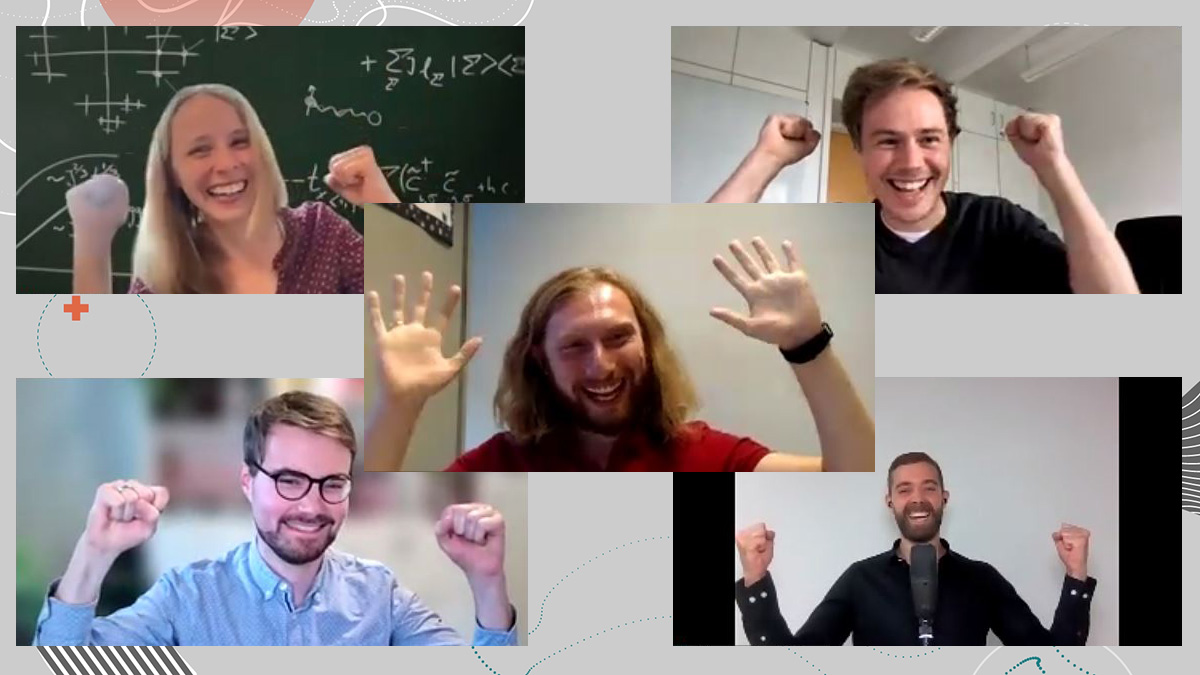Bildunterschrift: Die Gewinnerinnen und Gewinner des Quantum Futur Awards 2021 (v.l.o.n.r.u.): Dr. Annabelle Bohrdt, Benjamin Schiffer, Cem Güney Torun, Dr. Pascal Cerfontaine, Johannes Jakob Meyer
